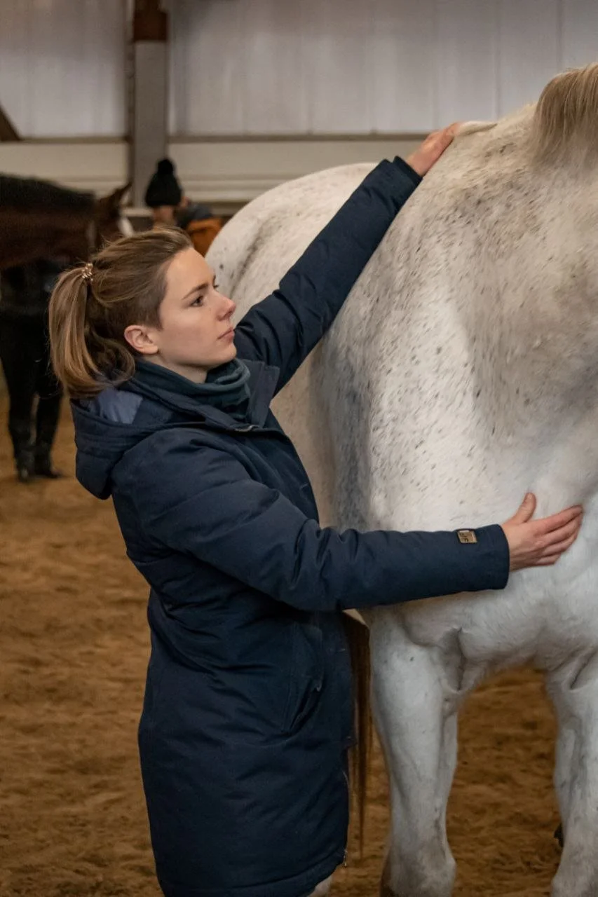 In meiner Arbeit verbinde ich osteopathisches Wissen mit feinem Spüren im Energiefeld des Pferdes. Dort zeigen sich Blockaden, die durch alte Verletzungen, Stress oder auch emotionale Themen wie Trauer entstanden sind.